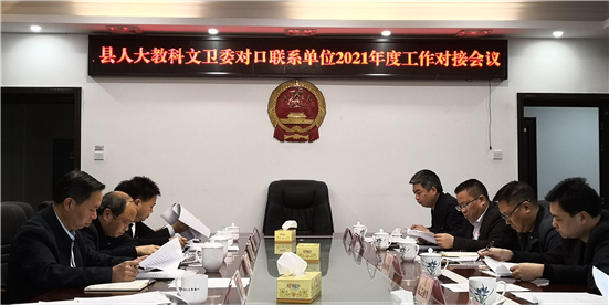3月31日,县人大教科文卫委对口联系单位工作对接会在人大机关二楼会议室召开,部署安排专委会工作。县人大常委会副主任龙要平出席会议,县人大教科文卫委主任委员姚建民主持会议,县科工业局、县市监局、县教育局、县卫健局、县文旅广体局、县茶旅服务中心等单位主要负责同志参加会议。 会议传达了县人大常委会2021年工作要点,通报了县人大教科文卫委全年工作计划,各单位分别汇报了2021年工作计划安排,兼职委员就专委会工作提出了意见建议,要求进一步加强对口单位联系,进一步创新代表建议办理方式。 龙要平强调,专委会工作要立足新发展阶段,贯彻新发展理念,构建新发展格局,谋划好全年工作。一是要高站位贯彻党委决策部署,服从服务于全县发展大局,坚持以乡村振兴为统揽,落地落实好“十四五”规划目标。二是要高质量落实年度工作计划,加强工作协调配合,注重合法性、实效性、时效性,认真履行监督职能,高标准完成各项议题。三是要高要求抓好自身建设,加强政治引领,加强学习培训,提升履职能力,严守底线红线。紧紧依靠县委坚强领导,县人大常委会的有力监督,落实落细各项工作举措,圆满完成全年工作任务,向建党100周年献礼。  |