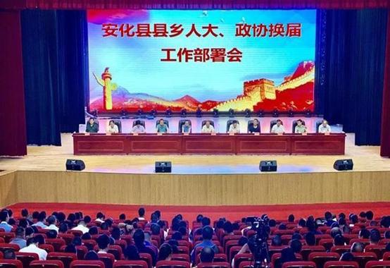 7月5日下午,安化县召开县乡人大、政协换届工作部署会议,会议要求全面贯彻落实中央和省委、市委关于换届工作的各项要求,确保县乡人大、政协换届工作取得圆满成功。     会上,安化县委常委、组织部长陈飞燕作工作报告,对全县人大代表、政协委员提名推荐工作进行了具体部署。     安化县委书记刘勇会指出,本次县乡人大、政协换届,是在庆祝建党100周年、实施“十四五”规划、开启全面建设社会主义现代化国家新征程的关键节点进行的一次换届,事关全局、责任重大。全县上下要统一思想,提高认识,切实增强做好换届选举工作的责任感和使命感,要通过换届选举,真正选出政治坚定、作风过硬、实绩突出、群众信任的好干部,配出朝气蓬勃、团结和谐、奋发有为、敢于担当的好班子,换出心齐气顺劲足的好面貌,为实现安化高质量发展提供坚强政治保证和组织保证;要依法依规,严格程序,高效推进人大换届选举工作,要严格把握政策,坚持“五个好”标准,落实“九个一律”不得提名推荐要求,选出更多政治素质好、工作能力强、思想作风优、能为民代言发声和积极参政议政的人大代表;要明确要求,把握政策,精心谋划政协换届选举工作,要扎实做好前期准备工作,把准推荐提名考察关口,严密组织换届大会选举,使新一届政协委员更具广泛性和代表性,更加适应新形势下经济建设和社会发展的客观需要;要加强领导,压实责任,确保换届工作取得圆满成功,要切实发挥党的统领作用,注重统筹兼顾,严肃换届纪律,坚持教育在先、警示在先、预防在先,抓好纪律学习教育,确保换届工作风清气正。     安化县委副书记周登高主持会议,县人大常委会主任李太源、县政协主席王益文等全体在家县级领导参加会议。  |