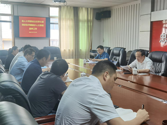 7月13日下午,县人大常委会主任、县选举委员会主任李太源,县人大常委会联工委主任、县选举委员会委员、办公室主任方建国调研指导东坪镇县乡人大换届选举工作。东坪镇党委书记卢映云,党委副书记、镇长瞿志勇,党委副书记朱斌,党委委员、人大主席提名人选喻江滔,党委委员、纪委书记、监察办主任姜凛,人大副主席提名人选刘婧雯,镇选举委员会秘书组成员参加调研。 座谈会上,李太源听取了工作汇报并仔细查看了东坪镇县乡两级人大换届工作相关资料,对东坪镇换届选举工作前期工作予以充分肯定。李太源表示,东坪镇是全县政治经济文化中心,人大换届选举工作任务艰巨,意义重大,接下来,要严格对照县乡人大换届选举要求,把握时间节点、加强组织保障,注重代表的先进性和广泛性,高度重视选民登记的全面性,依法依规,确保县乡两级人大换届选举圆满成功。  |