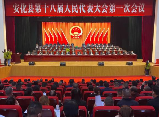 安化县领导:刘勇会、潘文剑、陈飞燕、胡能华、钟曙波、李德辉、谢可赞、曹石多、廖小甫、王思婷、郭环球等在主席台就坐。会议由安化县人大常委会副主任龙要平主持。大会应到代表340人,实到332人,因事因病请假8人,符合法定人数。