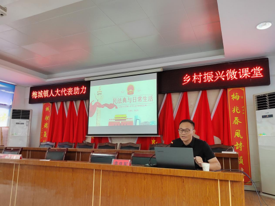 培训会上,特别邀请县人大代表助力乡村振兴宣讲团成员、安化县农业科技示范场场长、支部书记李良军为全体参训代表授课。李良军结合人大代表履职需要,重点领学了《乡村振兴促进法解读》和《民法典与日常生活》。李良军代表的讲课深入浅出,既有法律条文的解释,又有经典案例分析,内容精彩纷呈,并通过互动问答充分调动了参训代表的听课积极性。全体代表通过学习对两部法律有了深入的认识,进一步强化了法治思维意识。 党委委员、组织委员周艳详细解读《梅城镇关于践行全过程人民民主村试点工作方案》,对试点工作任务进行了专题部署。