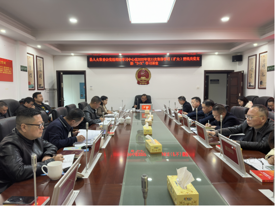 11月25日,安化县人大常委会党组书记、主任陈飞燕主持开展县人大常委会党组理论学习中心组2025年第11次集体学习(扩大)暨机关党支部“2+X”学习课堂。县人大常委会副主任龙要平、李艳云、李志生、卢映云、胡能新参加学习。