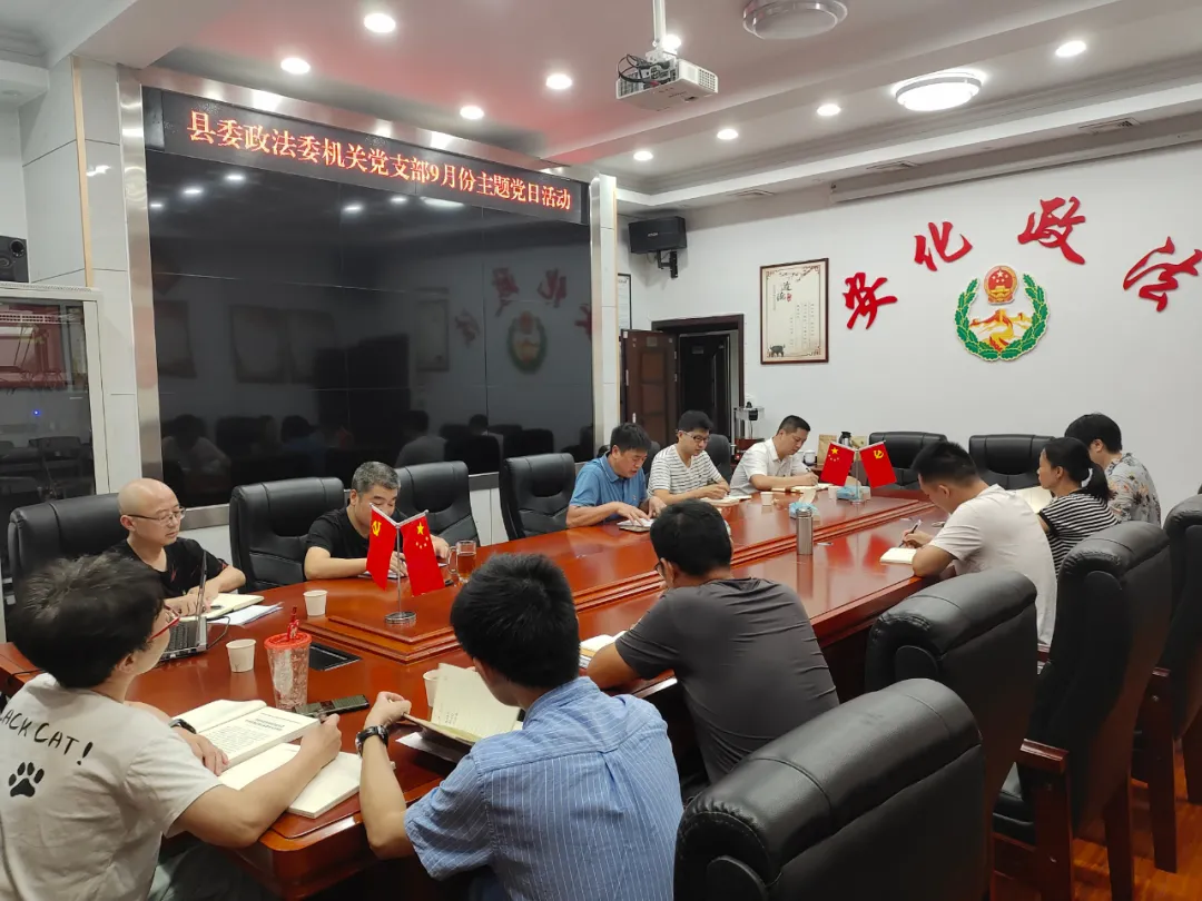 9月24日,县委政法委机关支部开展9月份主题党日活动,常务副书记、机关支部书记伍务龙主持活动,县委组织部党建联点指导员到会指导,机关支部全体党员参加活动。