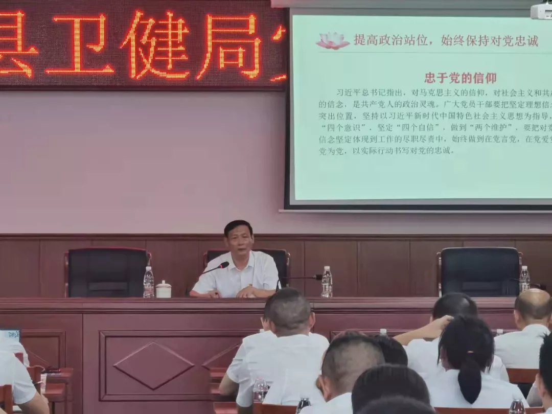 局党组书记、局长李钦初为全体人员上了一堂《加强党性修养 构建健康人生》廉政党课。要求党员干部忠于党,锤炼党性,加强党性修养,营造风清气正的生活、工作环境。把对党的热爱、对人民的热爱、对卫生健康事业的热爱体现到日常工作之中,让人民群众有更多的健康获得感、安全感、幸福感。 |