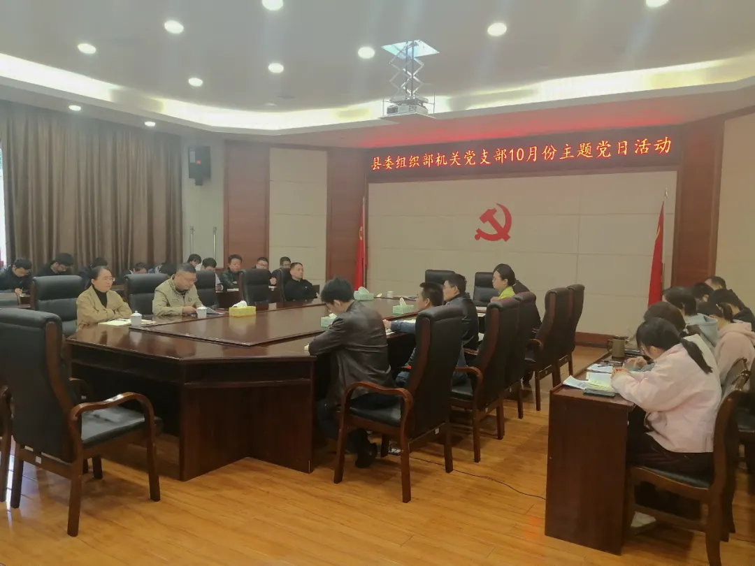 10月18日,安化县委组织部机关党支部开展10月份主题党日活动,县委组织部副部长、机关党支部书记龙星乔主持,机关支部全体在家党员参加。