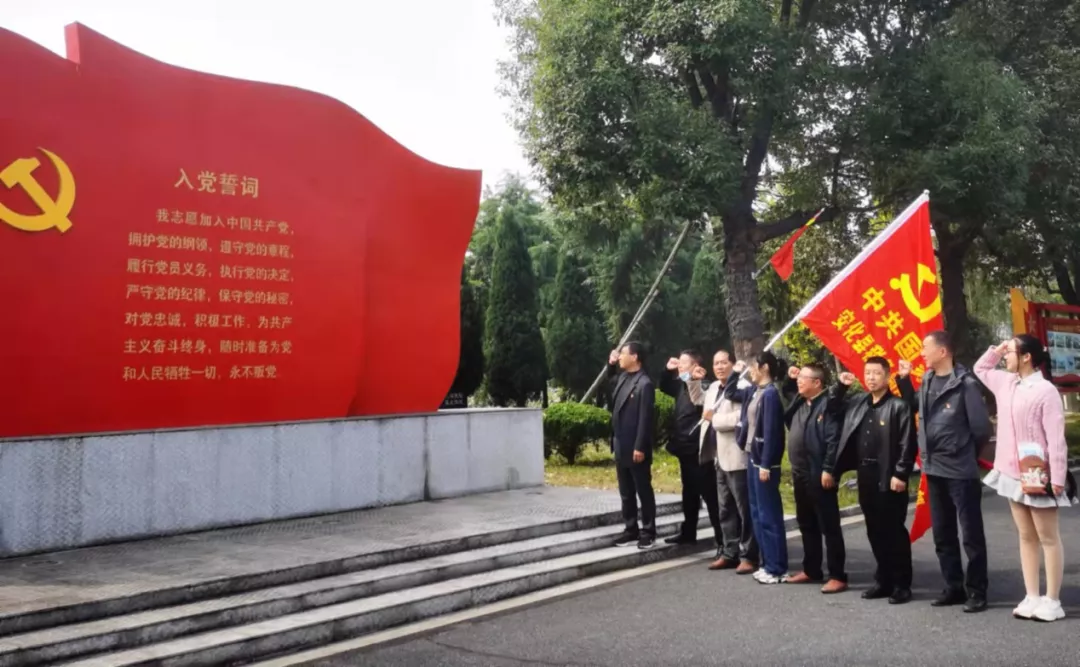 在南县厂窖惨案纪念馆前门鲜红的党旗面前,全体党员肃立,庄严举起右拳,在梅城分局支部书记熊景红的带领下重温了入党誓词,铿锵的誓言震撼着在场的每位党员,使党员们再一次接受了心灵的洗礼,进一步坚定了理想信念和政治立场。