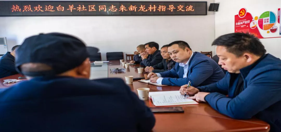 白羊社区驻村工作队与居支“两委”干部实地参观了新龙村党建阵地建设与村部沿线卫生区域,与新龙村就产业发展、人居环境整治等中心工作进行了深入交流。随后来到木榴村,重点就强班子带队伍建设进行探讨。村居班子成员相互学习经验,谈感受、化行动、定措施,进一步解放了思想,凝聚了人心、明晰了方向。