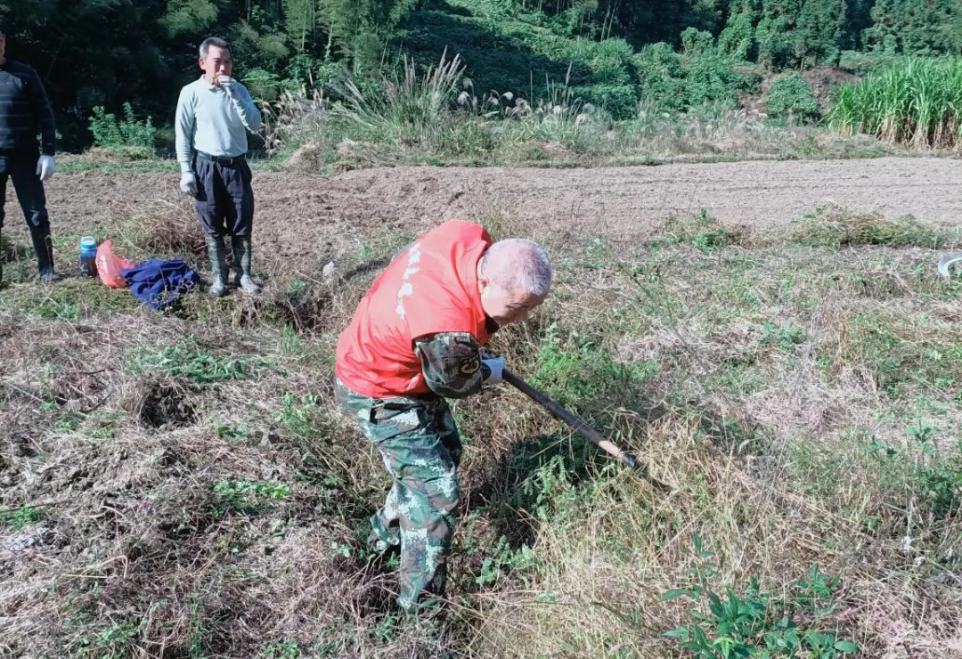 "赶着天气好,要尽快完成油菜的播种",11月12日,阳光正好,在滔溪镇新联村的油菜基地内,鲜红的党旗迎风招展,市政协驻新联村工作队第一书记熊伏球仔细地翻耕着土地,清理杂草,在他身旁二十余亩的油菜基地内,十多位志愿者正在弯腰忙碌着。
