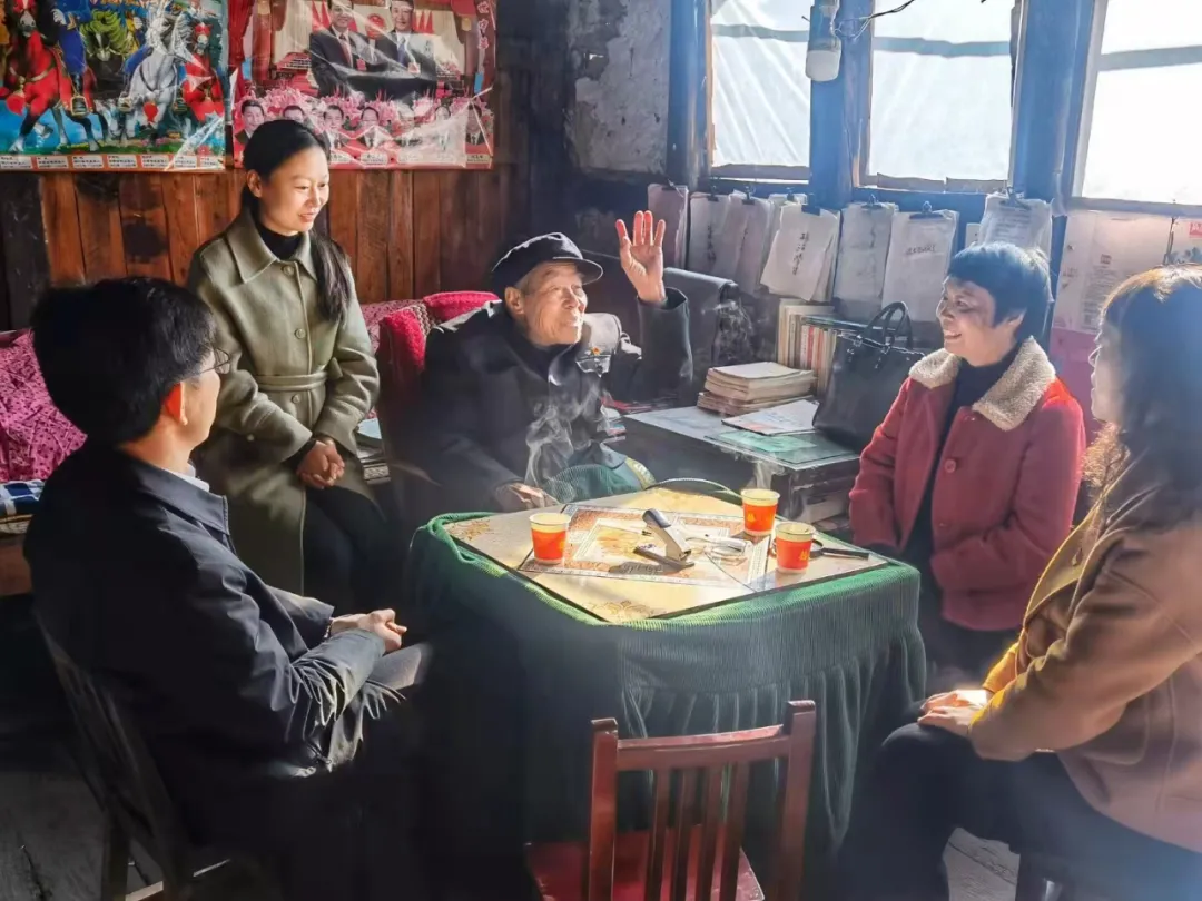 12月2日,安化县委组织部在奎溪镇雾寒村开展“致敬老党员 争当好干部”学习教育活动,机关全体党员参加。部机关党员干部一行首先抵达唐上君老师家中,与其进行了深入交流,了解到唐老师已95岁高龄,身体健康精神状态良好,闲暇时候依旧喜欢读书看报、关注近期的时事热点,对十九届六中全会精神进行了学习,并阐述了自己的心得体会。唐老师书楼中书桌上堆满了各种书籍,“活到老学到老”是他经常挂在嘴边的一句话。在他辅导过的学生中先后考出了50名大学生,唐老师认为,作为教师,要有“爱心、耐心、恒心、决心”,没有教不好的学生,只有缺少教育方法的老师与缺少学习方法的学生。他将继续关心青少年儿童的健康成长,争取培养更多优秀的学生。在唐老师房屋旁的石拱桥上,雾寒村退休教师张老师,给大家讲述了红军长征时在本村发生的“一块红军布”、“娘帮红军筛米,父解红军难题”、“红军背尸动天地,老乡埋骨传后人”等三个小故事。在雾寒村村部,唐上君老师给大家上了一堂《永远忠于党,海枯石烂不变心》的生动党课。