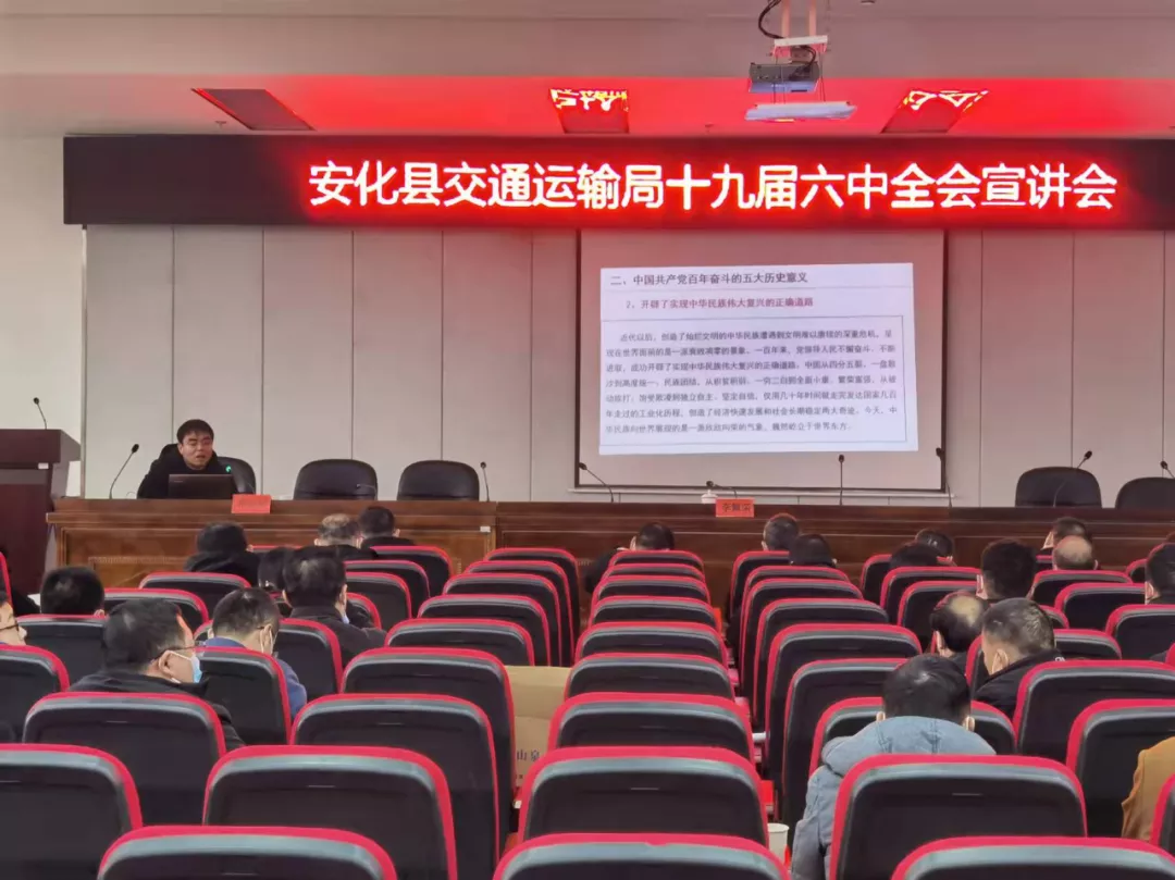 1月17日,安化县交通运输局召开学习贯彻党的十九届六中全会精神宣讲会。局领导班子,机关股室、二级机构负责人和局属各支部委员等50余人参加会议。宣讲会上邀请县委党校教研室主任蒋吉军授课。