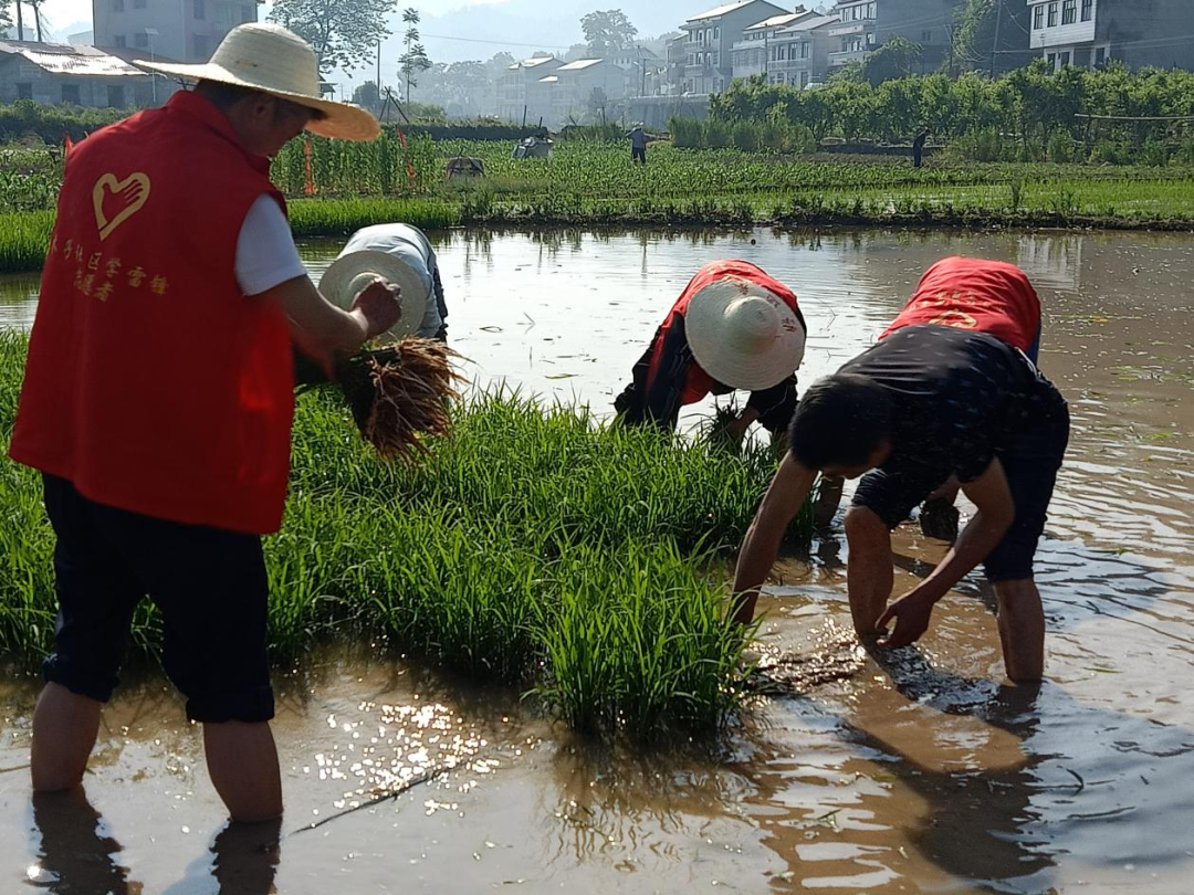 移苗、牵线、插秧……现场一片忙碌景象。5月6日上午,东坪镇木子社区党总支组织社区党员干部、入党积极分子帮助水井组居民谌某插秧,解决种地劳动力不足问题。