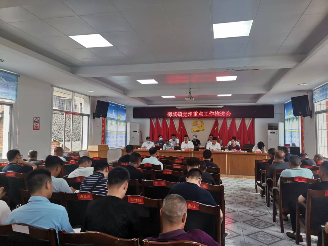6月6日,梅城镇在政府4楼会议室召开党建重点工作推进会,镇党政班子、村(社区)党组织书记、第一书记参会。