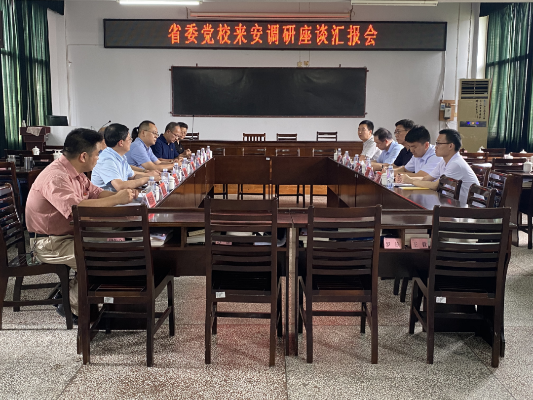 为深入贯彻习近平总书记关于党校办学治校系列重要指示精神,贯彻落实《中国共产党党校(行政学院)工作条例》,提高全省党校系统整体办学水平,6月21日,中共湖南省委党校(行政学院)教务部主任程铁虎一行5人来到安化县委党校就办学质量评估工作开展座谈会,益阳市委党校常务副校长李振华,安化县委常委、组织部长钟曙波、县委党校常务副校长方建国及县委党校部分教职工代表参加座谈。