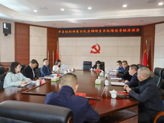 祁辉一行在县委组织部召开座谈会,充分听取基层各单位意见建议。会上,县委办、县政府办、县委组织部、县发改局、县商务局、县统计局等单位分别介绍了安化县近几年来市对县绩效考核工作开展情况,并就如何实施区县(市)差异化绩效考核提出了具体建议。祁辉对安化县积极创先争优的良好状态表示充分肯定,他指出,各级党委政府都应全力以赴无条件完成绩效考核任务,并将充分考虑各单位提出的意见建议,促使差异化绩效考核充分调动各区县(市)创先争优的积极性,有力推动益阳经济社会高质量发展。
