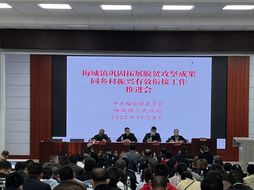 为全力以赴做好迎接国家、省对梅城镇巩固拓展脱贫攻坚成果同乡村振兴有效衔接实地考核备检工作,11月8日上午,梅城镇召开巩固拓展脱贫攻坚成果同乡村振兴有效衔接工作推进会,全体党政领导、县级蹲点包村责任人、市县驻村帮扶工作队队长、各线主任、镇政府帮扶(联系)责任人、各村(社区)党组织书记、乡村振兴专干等243人参加。