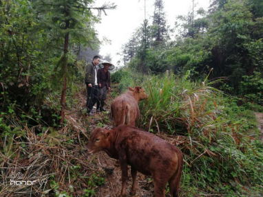在一次走访时,胡俊敏跟王老哥聊起了家常:“老王啊,你看你家庭情况比较差,有没有想法让自己富起来啊?”王老哥看了看胡俊敏,呆了半晌说:“胡干部,我妻子需要长期照顾,我身体也不行,孩子还在读初中,又没关系又没本金,怎么富啊,就这么过下去算了吧!”俊敏对王老哥说:“老王,你不要放弃啊,你看很多人都靠自己的本事致富了,你就甘心永远这样下去吗?你看我跟你接触了这么久了,你也是个有骨气的人,你不想自己也要为你孩子想想啊,我多方帮你打听了,也考虑了你家庭的情况,我想让你养两头牛试试,你觉得怎么样?”“干部啊,我不是不想靠自己的能力,我家庭条件就这样,养牛……唉,我怕亏不起啊”。“如果到时候亏了,我帮你贴钱。”胡俊敏斩钉截铁的说到。听到王老哥的话后,胡俊敏坚定了信心。说干就干,接连十多天,胡俊敏一有闲暇时间就往村里跑,帮助王老哥搭建起了牛棚。牛棚建好后,工作队及帮扶责任人带上王老哥一行驱车一百多公里,到仙溪学习养牛经验,听到养牛户的介绍后,王老哥打消了疑虑,购买了种牛。买来牛后,由于牛比较认生,不听王老哥的调摆,王老哥的牛脾气也上来了,在一天早上,他来到村便民服务中心破口大骂:“我说了不养牛的,你们硬要我养,现在这牛我牵着往东它就往西,牵着往西它就往东,这牛我养不好了,要不你们驻村工作队牵到村部来养,要不让胡俊敏牵回去养,反正我是不养了!” 驻村工作队劝解:“王老哥,别急,我问了养牛的,这牛刚开始的时候有点认生,过两个星期跟你熟了就听你的了。”把王老哥劝回去后,工作队又给胡俊敏去了个电话,告诉他王老哥养牛的情况。胡俊敏听到情况后,骑着摩托车立马赶到了村上,终于把王老哥劝好了,一到休息时间,胡俊敏就会跑到村上陪着王老哥一起放牛,渐渐的牛不认生了,也听调摆了,王老哥笑呵呵的说:“以后我要成为养牛大户”。从此以后,每天清晨在山间的小路上都会出现王老哥的放牛的身影。