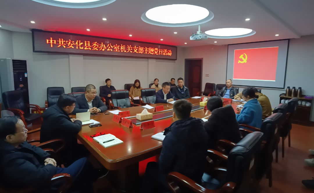 11月29日,县委办机关党支部开展11月主题党日活动,机关党员干部参加会议。