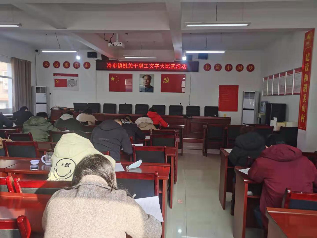 为切实提高机关青年干部提笔想写、提笔能写、提笔善写的文字综合能力,近日,冷市镇举办机关青年干部文字大比武活动,36名机关青年党员干部踊跃报名参加。 活动现场纪律严明、秩序井然,参赛者认真思考,专心答题。考试结束后,大家纷纷表示,要以此次考试为契机,以学促用、以干促学、学用相长,不负时代要求、不负青春韶华、不负组织重托,努力加强学习、锤炼坚强党性、提升能力本领。