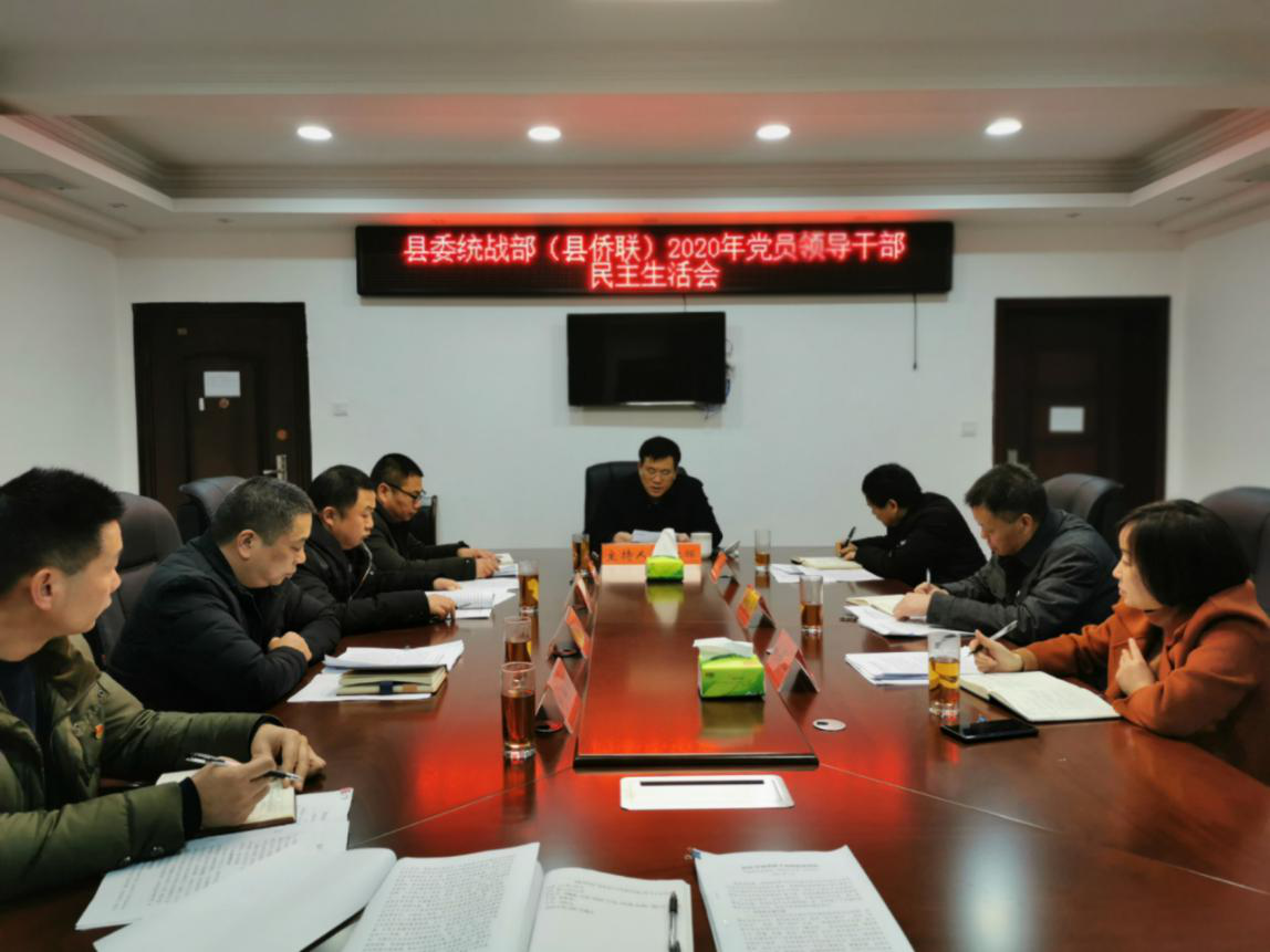 2月4日,县委统战部(县侨联)召开2020年度党员领导干部民主生活会。县委常委、统战部部长李德辉主持会议。县纪委副书记、县监委副主任魏创平,县委组织部二级主任科员熊智军到会指导。