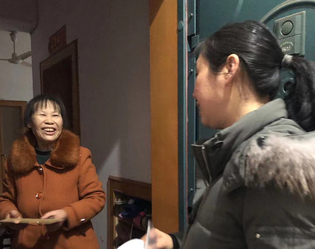 机关党员把新年祝带到困难妇女群众家中,并详细询问她们的身体状况和家庭情况,了解她们当前的困难,面对面、手握手、心贴心的把党委政府和妇联组织的关心关怀带给她们。