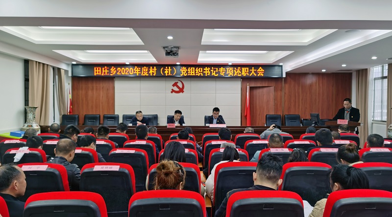 3月20日,田庄乡召开2020年度村(社区)党组织书记述职评议大会,机关全体干职工,两新党组织书记,村(社区)第一书记、党组织书记、纪检委员、党建专干共110余人参加会议。