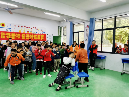 “叔叔我会唱歌!阿姨我会跳舞!我们一起跳‘向快乐出发’吧!”3月30日下午,在安化县特殊教育学校,孩子们的笑声简直要把屋顶掀翻了,这些特殊的孩子与县征拆办的党员干部们玩得不亦乐乎.