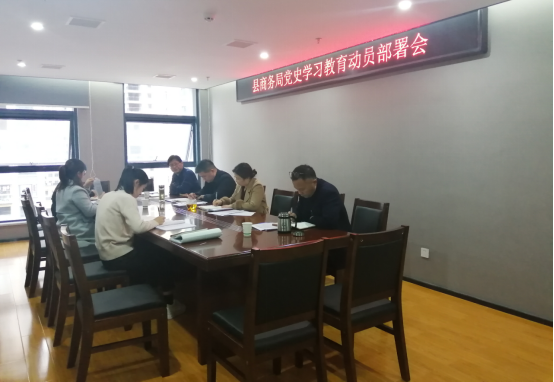 4月7日,安化县商务局党组召开党史学习教育动员部署会和2021年党建工作研究部署会,深入贯彻中央、省、市、县各级党史学习教育动员大会精神和党建工作指导思想,全面部署了全局的党史学习教育和2021年的党建工作,会上研究并通过了《2021年党建工作计划》《党史学习教育实施方案》《2021年党建工作实效化方案》等文件,中心组成员还开展了“学史明理”专题学习研讨。