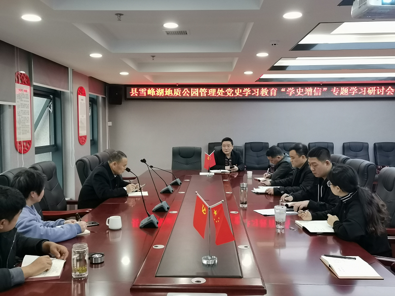 4月13日,安化县雪峰湖国家地质公园管理处召开党史学习教育“学史增信”专题学习研讨会,机关全体干职工参加。