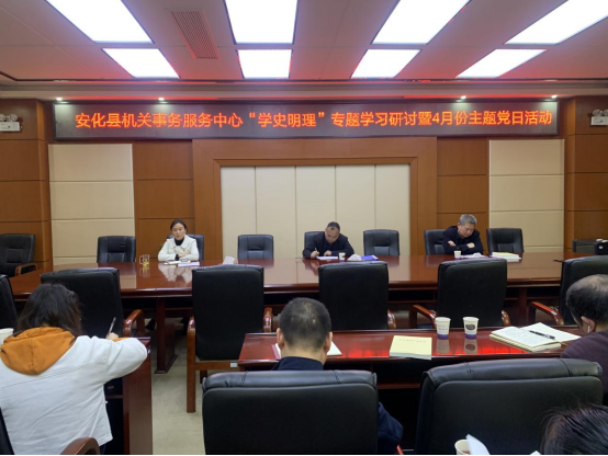 4月16日,安化县机关事务服务中心开展“学史明理“专题学习研讨暨4月份主题党日活动,全体机关党员、干职工参加会议。