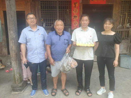 “感谢党和国家,没有忘记我们这些老党员,一直牵挂着我们,看到送来的这些节日慰问,心里暖洋洋的,充满幸福的感觉。”75岁的老党员汪积本紧握着村支书的手动情地说道。 6月14日上午,在中国传统佳节端午节到来之际,带着对老党员的深切挂念,双江村党支部在村支书的带领下,为11位70岁以上的老党员送上自制的棕子、皮蛋等端午节礼物,向老党员们致以节日的问候与祝福。 在老党员们家里,村支书与老党员们一起回忆往事,聊起家常,了解他们的身体状况以及在生活中的困难、需求,并向他们讲解党的最新思想政策。 双江村党支部表示,老党员为我们的家乡建设做出过巨大贡献,是我们的宝贵精神财富。在“我为群众办实事”活动开展之际,要主动关注关心关爱老党员,全心全意全力帮助他们解决实际困难,让他们充分感受到党组织的关怀和温暖。