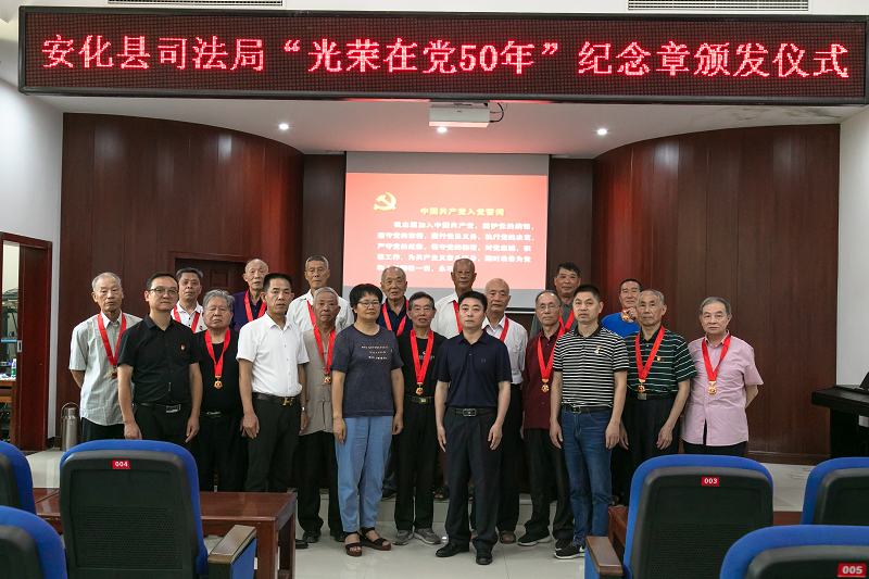 一百年征程浩荡,五十载初心如磐。6月22日,在即将迎来中国共产党成立100周年之际,安化县司法局为20名党龄50周年以上、一贯表现良好的党员举行了庄重简朴的“光荣在党50年”纪念章颁发仪式。离退休党员、机关全体干职工、各二级机构负责人参加。