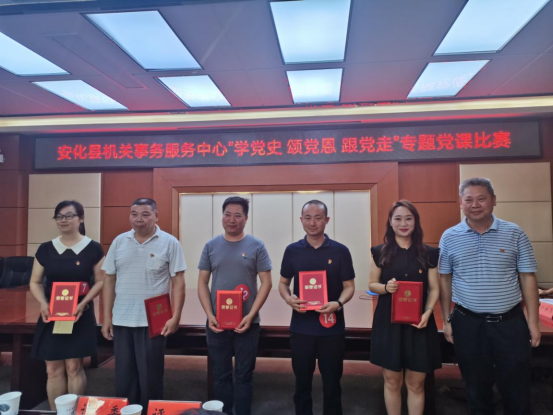 为庆祝中国共产党成立100周年,深入开展党史学习教育,大力宣传党的光辉历程和丰功伟绩,推动中心党员干部学史明理、学史增信、学史崇德、学史力行。6月24日,安化县机关事务服务中心举办“学党史、颂党恩、跟党走”党史学习教育专题党课比赛。 “将为民奉献的初心,根植于灵魂,融化于血液、落实在普通工作生活中,在为群众办好的每件实事里……”参赛选手们紧扣“学党史 颂党恩 跟党走”为主题,结合自身岗位实际,通过一个个典型事例和身边故事,让党史学习教育内化于心、外化于行,凝聚起党员干部感党恩、听党话、跟党走的磅礴力量。在场的观众倾听着一幕幕暖心的画面、一个个感人肺腑的故事、一句句铿锵有力的誓言,直击观众灵魂深处,久久不能平静。随后,中心党组成员为获得一、二、三等奖的选手进行颁奖。 中心党员干部李璐感慨地说道:“通过此次党课比赛,让我更加了解党史、国史及安化史,使我在今后工作中,将严格要求自己,做好本职工作,更好的服务于群众”。 下一步,中心将进一步加强党员党史学习教育,坚定党员理想信念,铸牢党员信仰根基,坚定永远跟党走的信念,增强责任感和使命感,在各自的岗位上担当作为,为庆祝党的百年华诞献礼。