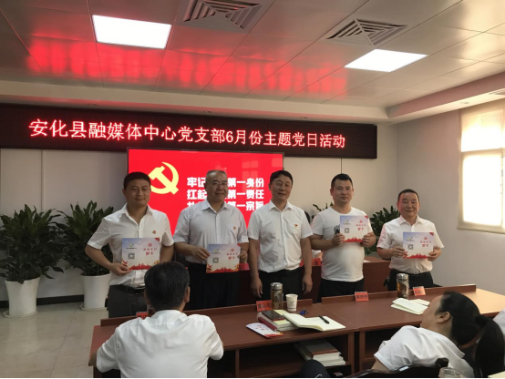 6月24日,安化县融媒体中心开展党组理论学习中心组第7次集体学习(扩大)会、党史学习教育“学史力行”专题学习研讨暨主题党日活动,中心全体党员参加。 会上,观看了红色视频《博物馆里的党史:一张特殊的全家福》《打谷场上连开50多天会 翻身农民“耕者有其田”》;集中学习了《习近平在湖南考察时强调在推动高质量发展上闯出新路子谱写新时代中国特色社会主义湖南新篇章》《习近平把握新发展阶段,贯彻新发展理念,构建新发展格局》等学习篇目,参会党员围绕“学史力行”专题,结合各自学习和工作实际,深入开展交流发言。 随后,党支部给每位党员过政治生日,发放了政治生日贺卡;召开了接收预备党员大会,并组织新党员到安化县红色教育基地陈列馆进行了入党宣誓活动。 参会人员纷纷表示,要自觉从党的百年历史中汲取砥砺奋进的精神力量,切实把学习成效转化为为民办实事的实际行动。