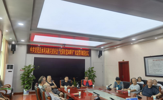 为庆祝中国共产党成立100周年,向老同志们送去党的温暖与祝福,传递党组织对他们的关心关爱,6月25日下午,县水利局在四楼会议室召开“光荣在党50年”纪念章颁发仪式暨离退休党支部庆祝中国共产党建党100周年座谈会。县水利局局长谢智兴、副局长唐永华参加会议。