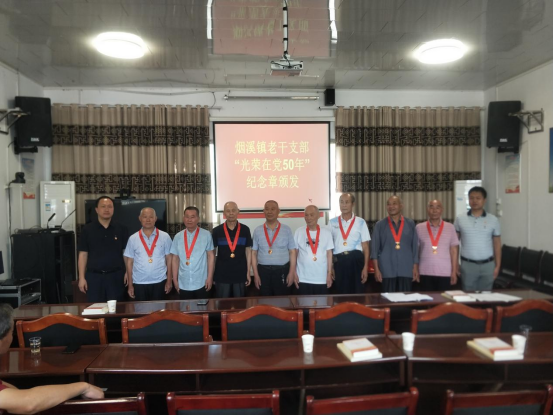 6月29日,烟溪镇组织老干支部开展“光荣在党50年”纪念章颁发,颁发仪式在庄严的国歌声中拉开序幕,全体党员重温了入党誓词,镇党委书记刘双爱为11名老党员颁发勋章。 刘双爱表示:“光荣在党50年”纪念章是党中央给各位老党员的一份礼物,更是一份荣誉、一种肯定。银发苍苍映党旗,岁月流转照初心。十分感谢各位老领导、老同志曾经为烟溪镇的发展倾注的心血和汗水,同时叮嘱他们保重好身体,希望一如既往关心、支持烟溪镇的各项工作,多提宝贵意见和建议。 “光荣在党50年”纪念章获得者代表肖高才回顾了自己的入党初心和在党50年来的风雨历程,由衷地感谢党中央和镇党委对老干部老党员的关心厚爱,并表示将永远听党话、跟党走,继续为烟溪镇的事业发展发挥自己的余热。 通过此次活动的开展,老干部们纷纷表示,将认真履行好党员的责任和义务,活到老学到老,认真按照党的要求,始终坚持为党为人民作出自己力所能及的贡献,好好为人民服务,不忘初心和使命,将党的事业进行到底。