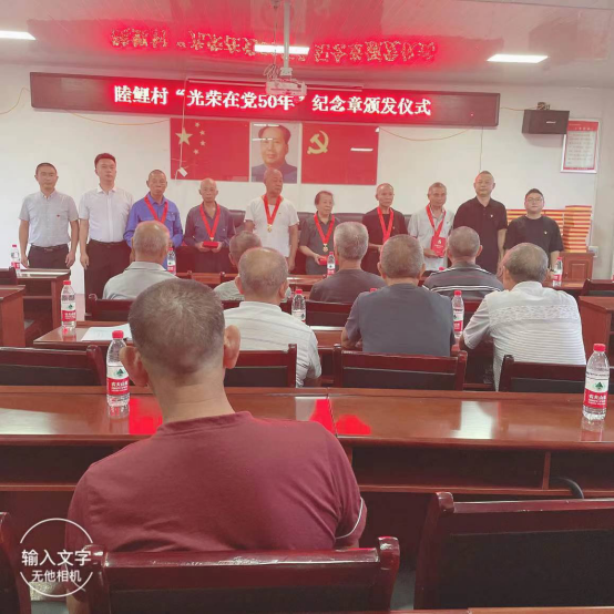 二、全程收看庆祝中国共产党成立100周年大会实况。驻村工作队同村“两委”干部、全体党员、村民代表,联村领导羊角塘镇政府副镇长李磊、驻村干部赵双喜一起在村部会议室集中收看了中国共产党成立100周年庆祝大会实况,听取了习近平总书记重要讲话,大家心潮澎湃、倍感振奋。会上, 为全村6名“光荣在党50年”的老党员颁发了纪念章,为全体党员颁发了中国共产党成立100周年纪念章。