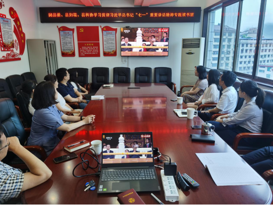 2021年7月1日上午7点45分,县科协全体党员干部齐齐整整坐在会议室收看庆祝中国共产党成立100周年大会,大会刚结束,微信工作群里党员干部们的心得体会纷纷“报到”。 “作为一名科技工作者,我们应牢记习近平总书记的嘱托,牢记共产党人的初心使命,切实担当起‘为科技工作者服务、为创新驱动发展服务、为提高全民科学素质服务、为党和政府科学决策服务’的工作职责,继承发扬共产党人、科学家的优良传统和崇高风范,以与时俱进的精神、革故鼎新的勇气、坚忍不拔的定力,担当作为,砥砺向前,重视青年人才培养,团结引领广大科技工作者不断向科学技术广度和深度进军!”,同时,县科协学习贯彻习近平总书记“七一”重要讲话精神专题读书班正式开启了“第一课”。 为学习贯彻习近平总书记在庆祝中国共产党成立100周年大会上的重要讲话精神,县科协从7月1日起组织为期3天的读书班,通过观看电影党课、自学、专题研讨等方式,引导全体党员干部学习贯彻讲话精神,从党的百年奋斗历史中汲取前行的智慧和力量,从群众急愁盼的问题入手,结合全民科学素质提升等重点工作任务,深入开展“我为群众办实事”实践活动,将党史学习教育走深走实。
