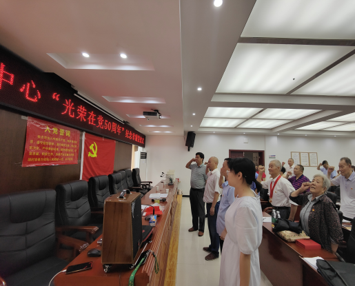 夏鹏翔主任向六位“光荣在党50周年”的老同志授予了纪念章。