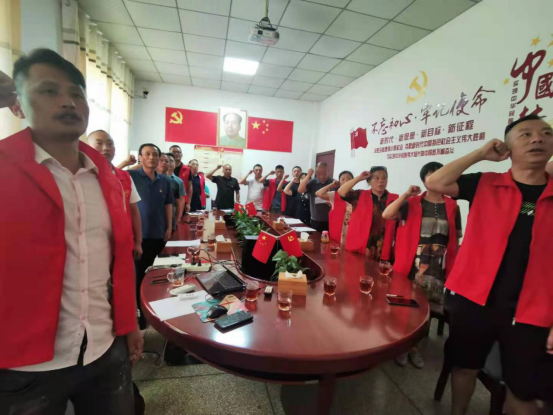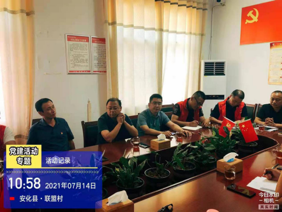 活动开始,县局领导李忠同志一行在村支书的邀请下参观了江南镇联盟村实体经济---安化县枫树湾生态种养专业合作社,并组织全体干职工召开了七月份主题党日活动会议。会上,李忠副局长为干职工讲述了一堂生动的党史专题党课,名为“重温党的历史,坚定党员理想信念”,要求全体干职工要常补精神之“钙”、筑牢思想之基,在大事大非面前保持清醒头脑,对党员的理想信念,有着更加重要的现实意义;副局长阙建梦同志结合联盟村实际情况,为江南镇联盟村的经济发展提出了至关重要的建设性意见;分管“乡村振兴”工作的刘金新同志对江南镇联盟村的乡村振兴工作提出工作工作要求,第一是驻村干部要发挥长处,带着责任来帮扶,第二是要有实事求是的精神,为联盟村多办实事,符合村民期盼,解决实际问题,第三是要发挥好安化市监局的不怕苦不畏难得精神,争取在、做“乡村振兴”工作的排头兵。
