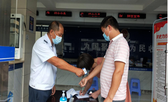 安化县税务局按照“涉税事,网上办,非必要,不进厅”的原则,通过税企联系群、官网、湘税通、办税大厅宣导等渠道,积极宣传“非接触式”办税服务和预约服务,引导广大纳税人缴费人通过电子税务局、“湖南税务”APP、自助办税终端等方式办理税费事项,倡导纳税人采用“网上申领、邮寄配送”或自助终端办理的方式领用和代开发票,对于确需线下办理的业务,提倡分时分批,先预约后办理。同时认真落实延期申报缴税、容错补偿、延期办税纳税信用不受影响等政策措施,为错峰办税创造有利条件。 担当记心“里”,党旗插一线,防控不敷衍