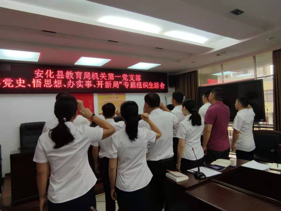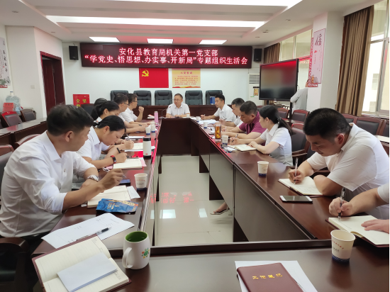 8月25日上午,县教育局机关第一党支部组织全体党员在局六楼中型会议室,召开了“学党史,悟思想,办实事,开新局”专题组织生活会,县教育局党组副书记、副局长、机关第一党支部书记邹友良主持会议。 会上,全体党员重温了入党誓词,集中观看了学习视频《路》《红色记忆——湖南坡战斗》。陆继新、宋海凡同志就深入学习贯彻习近平总书记“七一”重要讲话精神分别分享了个人的心得体会,夏倩霞同志分享了党史故事《藏在衣柜里的父子情》。 会上,邹友良同志作述职报告。今年以来,局机关第一党支部积极开展党史学习教育,依托每月主题党日、“学习强国”平台载体,组织全体党员学习原著、分享心得体会、讲党史故事,组织党员参观安化党史陈列馆、云台山烈士纪念碑、青年毛泽东游学与社会调查史实陈列厅,有力推动了党史学习教育深入开展。 邹友良结合自身工作与党史学习教育情况,带头开展批评与自我批评,他认为在今后的工作中理论学习仍需加强,多承担工作责任,多走访基层。支委班子成员、各股室负责人及部分党员对其提出了批评意见。随后其他党员逐一开展批评与自我批评,达到了“红红脸,出出汗”的效果。
